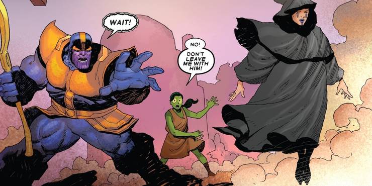 Later in the film Thanos manages to capture his other adopted daughter Gamora and uses the sisters against one another. In the fiction of the Thanos comic its actually Gamora telling the story. Thanos may not be able to call Death his bride but.