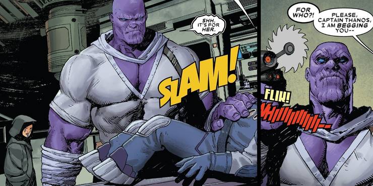 Its unlikely that Thanos could even be hurt by Gamora with a puny weapon like a knife. The hunt for Thane leads to an untold number of casualties in places like New York City and Wakanda with even more destruction left behind. In fact she later asks Quill to kill her if Thanos gets to her in order to prevent him from finding the Soul Stone so philosophically she seems to agree with him.